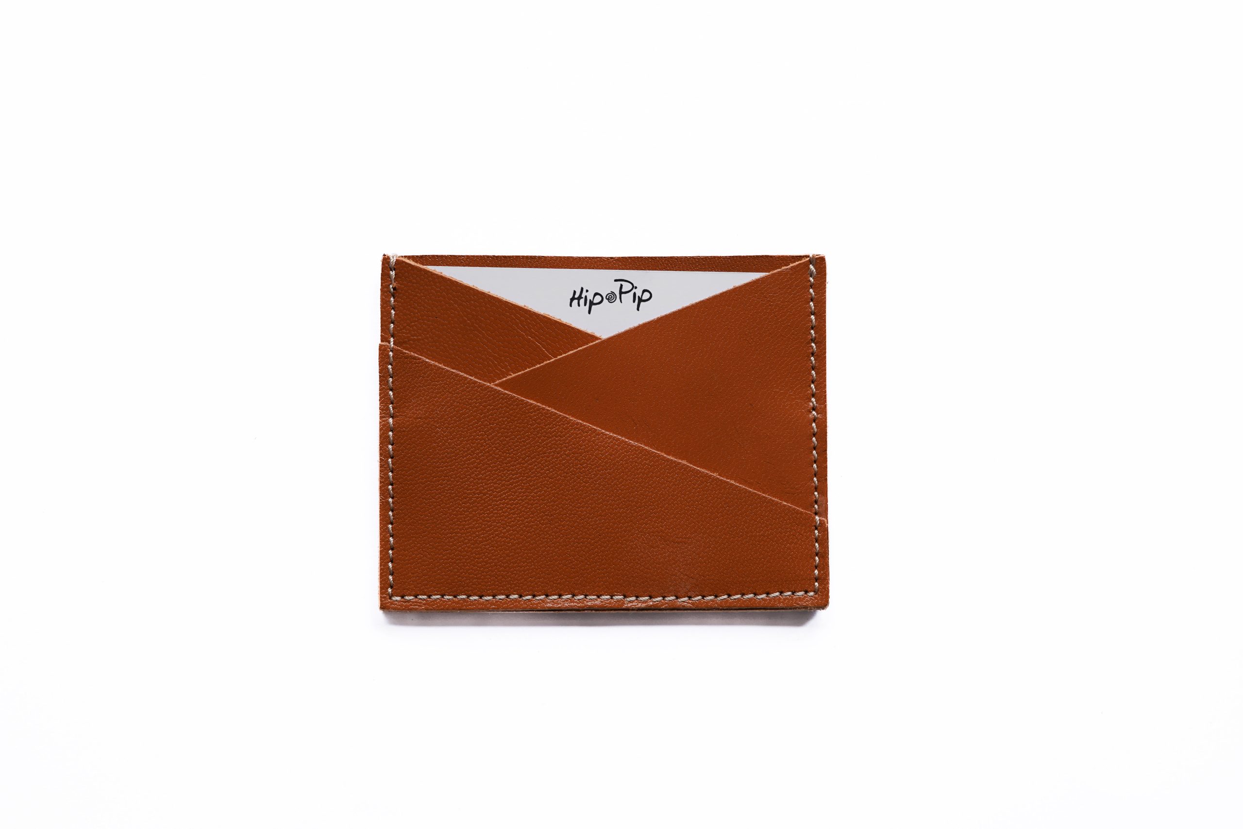 Credit card holder in Toffee coloured leather. Three divines for cards and space at the back for folded paper money. Look out for the matching drawstring bag and clutch bag. fabulous to travel with all three!